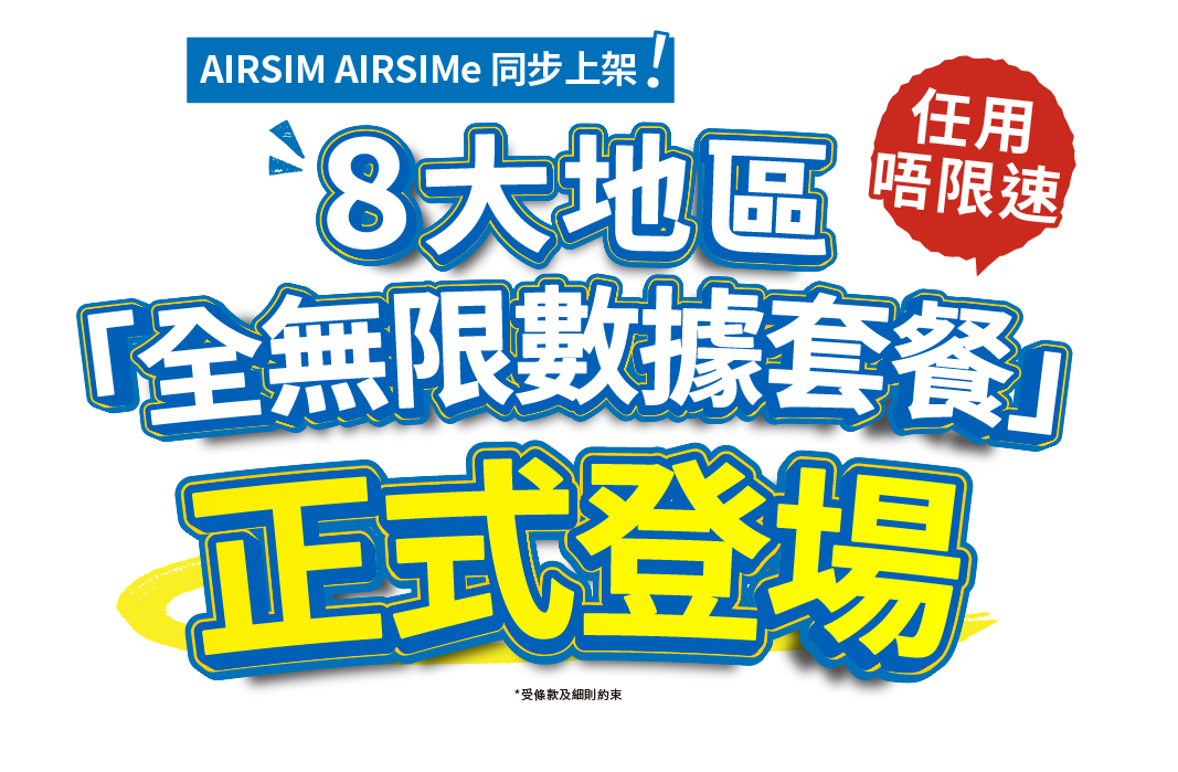 AIRSIM使用最新OTA技術,當你到達海外時,系統會把適用於當地的SIM卡配置到你的AIRSIM上,方便快捷。