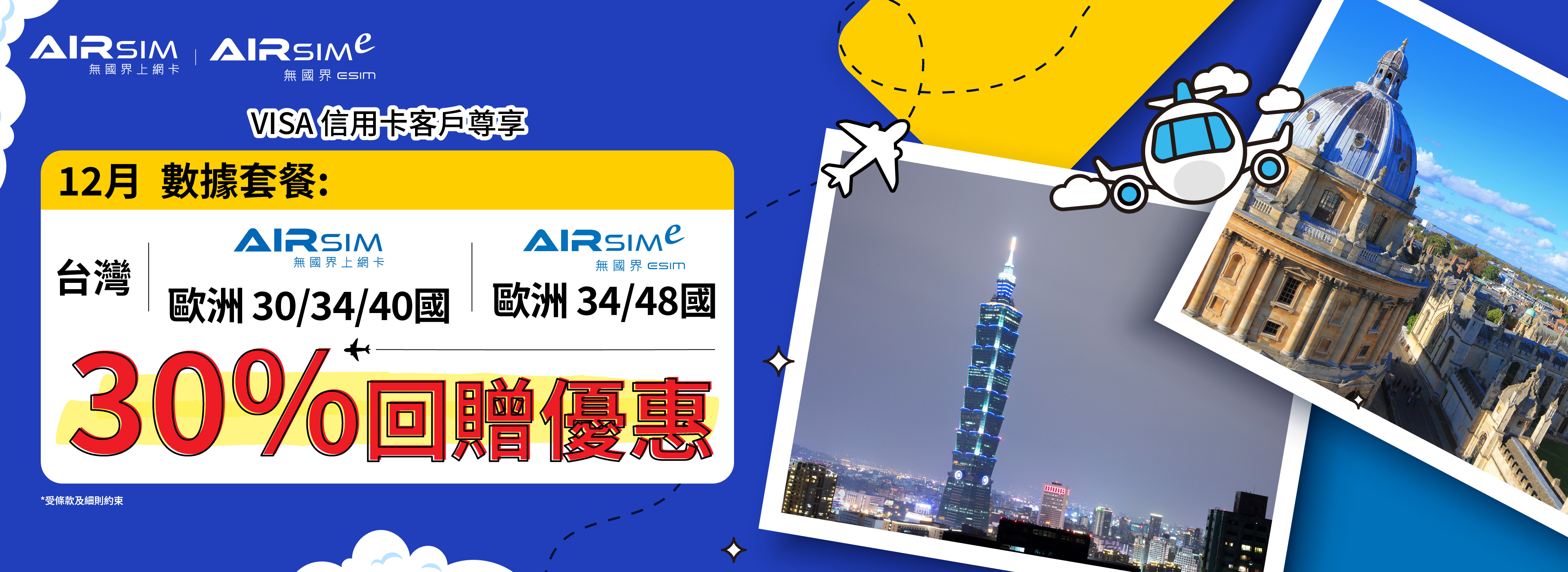 - 數據計劃之30%回贈將於2026年1月10日或之前存入客戶之 AIRSIM 帳戶。
